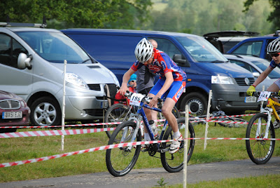As it happened, after having a good warm up (with club members and the rest of the field), I did have a good start. However I only held the lead for about the first 20 or 30 so metres, I was then overtook by a few, but by digging deap I held my position well and on entering the first bit of singletrack, I was in 3rd.